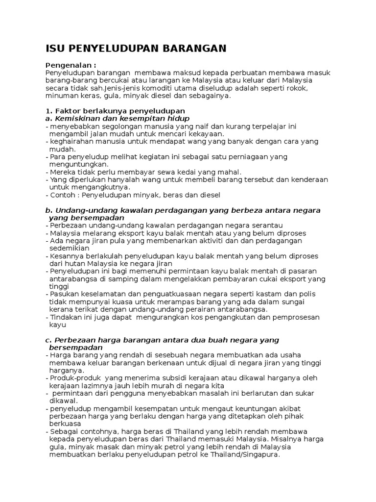Anasir-anasir luar ni termasuklah para pelaku aktiviti haram rentas sempadan. Oct 13 2018 Kegiatan penyeludupan di negara kita semakin meningkat berpunca daripada keadaan sempadan Malaysia dan terdapat pelbagai cabaran yang perlu dihadapi oleh kerajaan dalam menangani masalah ini 5. The situation has worsened with the dumping of firearms after the Cold War.