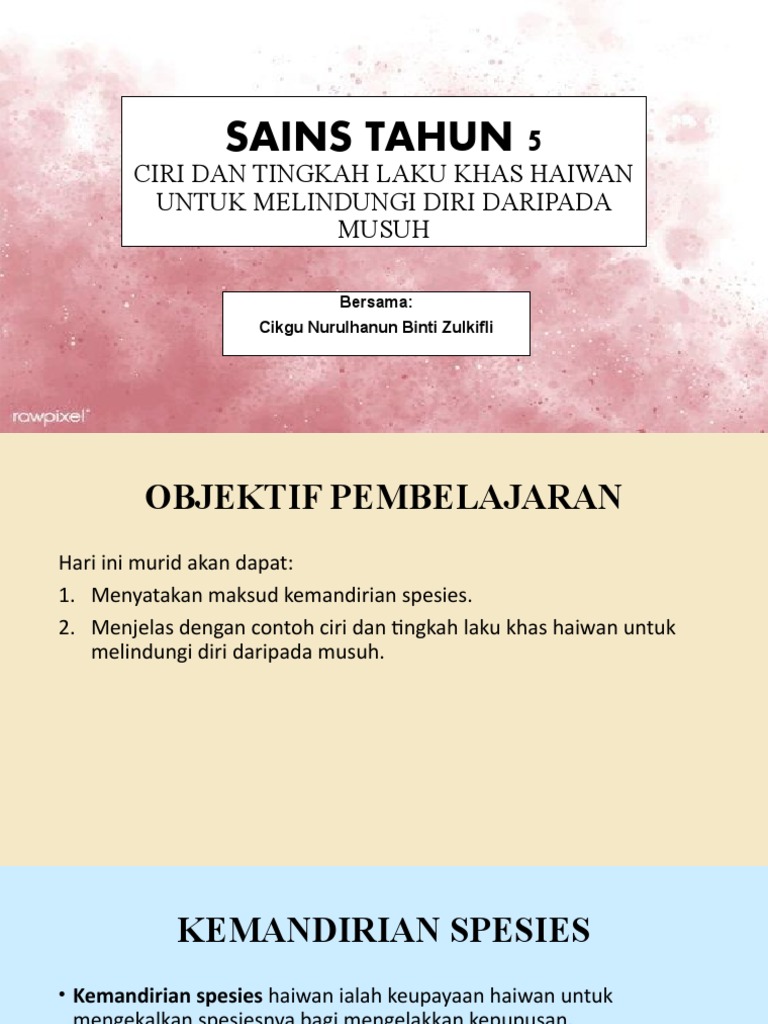Ciri Dan Tingkah Laku Khas Haiwan Untuk Melindungi Diri Quiz Quizizz