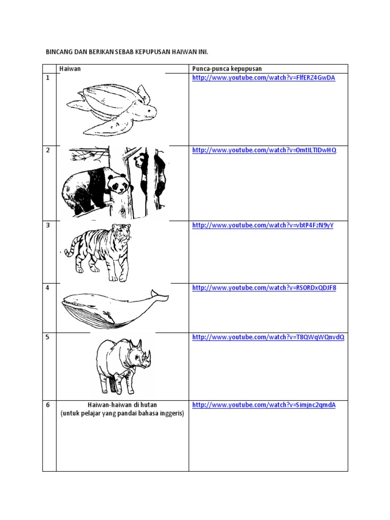 Sebab berlakunya kepupusan haiwan. Spesis binatang ni memang rasanya sudah ramai yang tahu berada dalam ancaman kepupusan. Aras 2 Menyatakan sebab berlakunya kepupusan haiwan dan tumbuhan. Aktiviti-aktiviti ini akan memusnahkan sesuatu habitat dan spesies haiwan dalam sesuatu jangka masa tertentu.