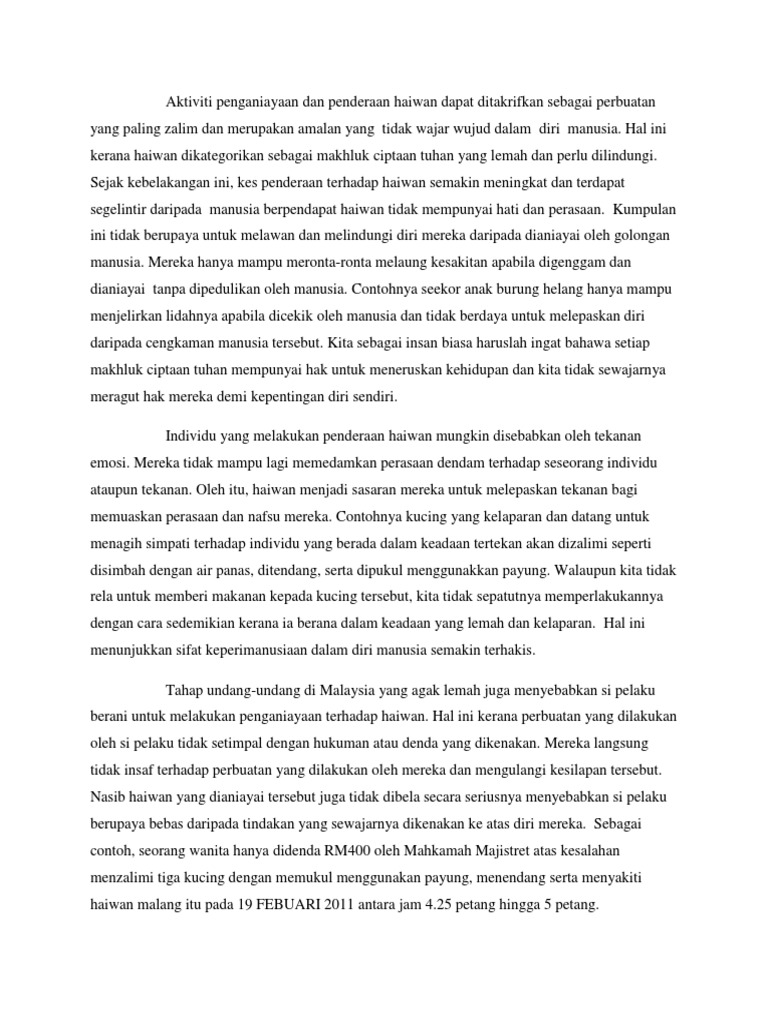 06072021 Aktiviti penganiayaan dan penderaan haiwan dapat ditakrifkan sebagai perbuatanyang paling zalim dan merupakan amalan yang tidak wajar wujud dalam diri manusia. 07052012 Tikus lipas lalat dan haiwan-haiwanperosak yang lain akan tertumpu di kawasan tersebut dan menyebarkan kuman-kuman ke tempat-tempat lain. Yang menyedihkan pihak yang dipertanggungjawabkan untuk menjaga haiwan-haiwan ini telah gagal sepenuhnya apabila berlakunya kes pengabaian haiwan dek kerana mahukan keuntungan.