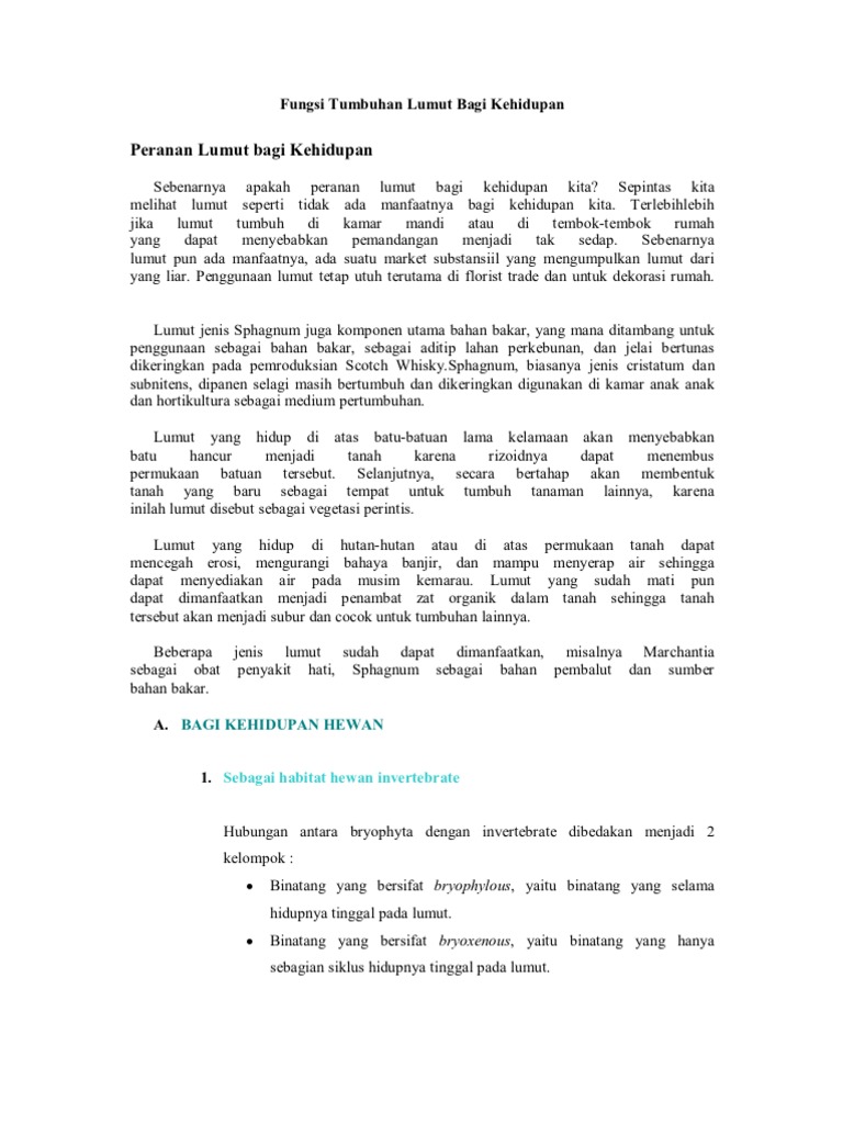 Fungsi Tumbuhan Lumut Bagi Kehidupan
